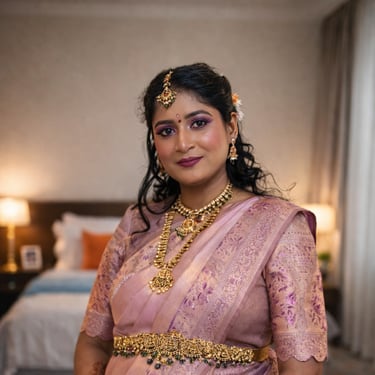 I’m Narmada, a certified bridal makeup artist specializing in makeup, hairstyling, and nail services for weddings and special occasions. I work with a clear focus on enhancing natural beauty while delivering refined, elegant, and camera-ready looks tailored to each client’s personality, skin tone, and event style. My expertise includes bridal makeup, HD and Ultra HD makeup, waterproof makeup, airbrush techniques, and party makeup, using international, high-end professional products to ensure durability, comfort, and flawless finish. Whether it’s a traditional wedding, reception, engagement, or special event, my approach is calm, detail-oriented, and client-centric.